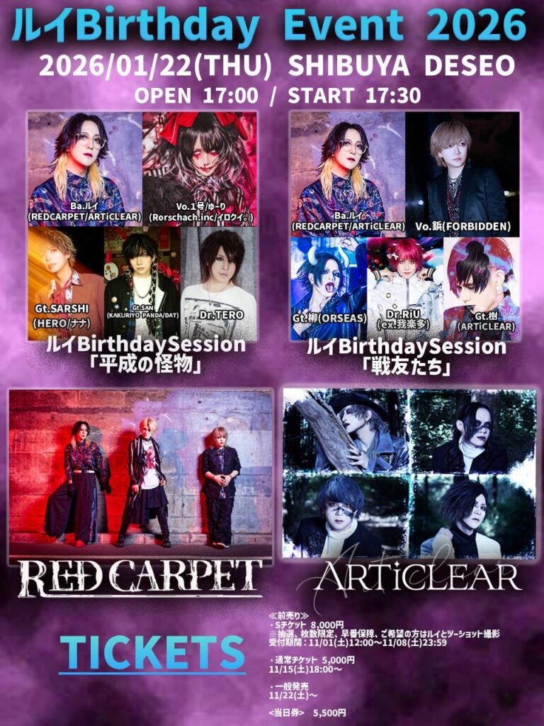 ■Sチケット¥8,000(枚数限定、早番保証、希望があれば終演後ルイと2ショット撮れます笑)