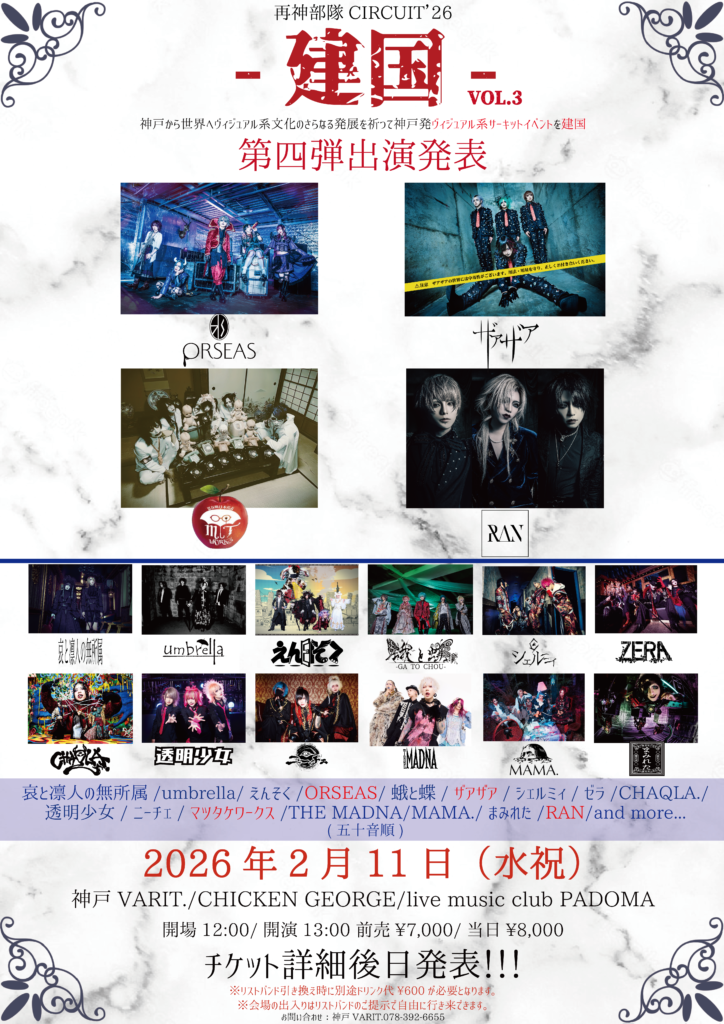 2026年2月11日(水) 神戸VARIT. / CHICKEN GEORGE / live music club PADOMA