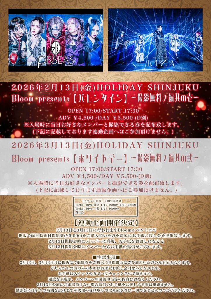 【チケット】1/13(火)~1/19(月)にて先行チケット受付販売(お1人様4枚まで)。チケットの発送は2月上旬予定。